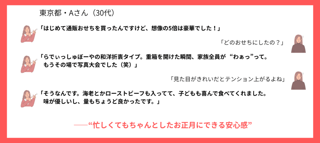 さらに「失敗しない」のも通販おせちの強み。味や量、盛り付けが事前に確認でき、口コミや評価で安心材料が揃います。年末は予約で売り切れが早いため、気になる商品は早めの確保がポイント。なにより、おせちを取り寄せることで、お正月の大切な時間を“料理に追われず、家族と過ごす時間”へと変えられます。